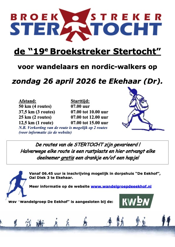 Op zondag 26 april 2026 staat de 19e Broekstreker Stertocht gepland.